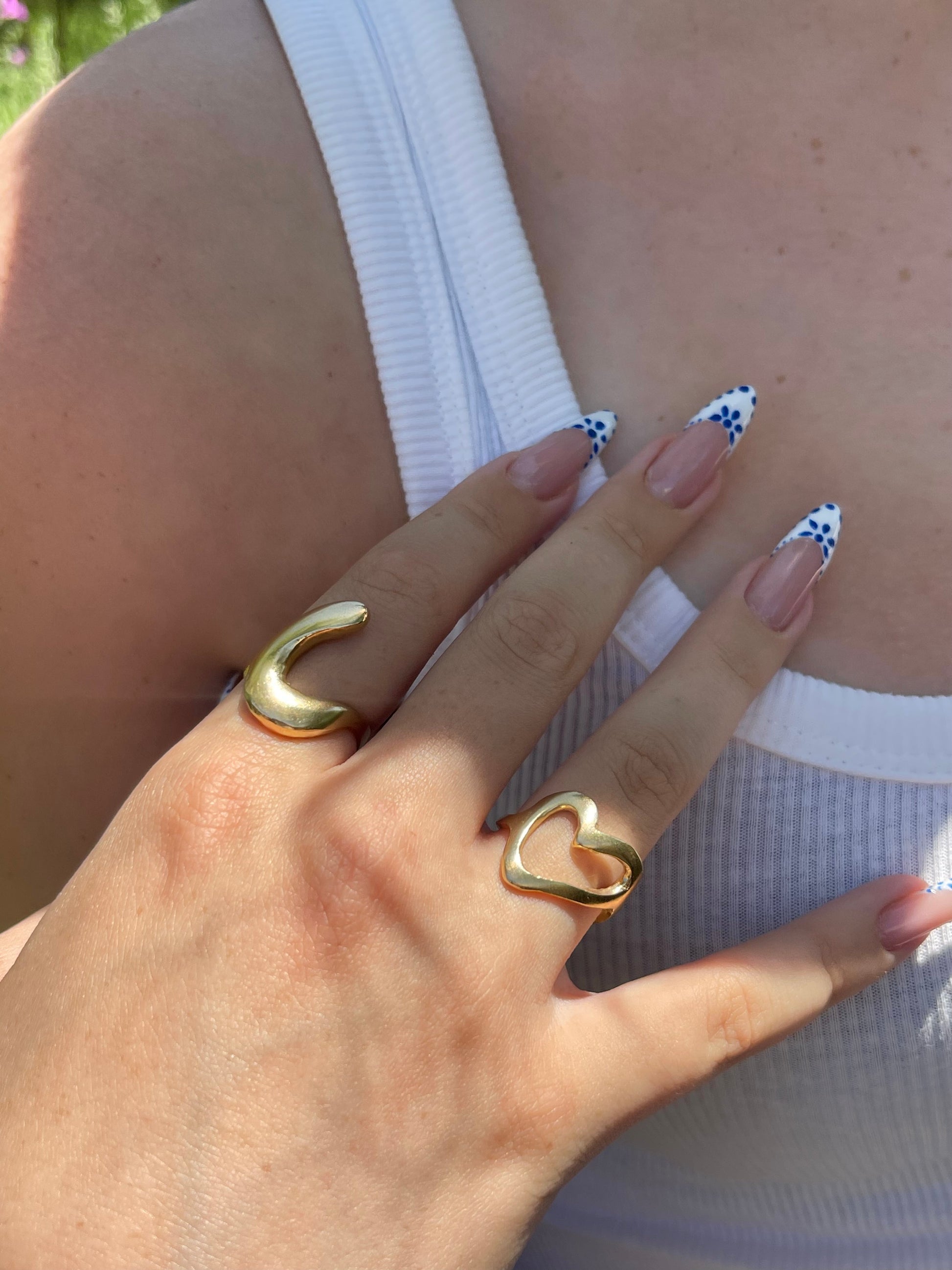 טבעת סהר בצורה אמורפית של ירח מצופה 2 מקרון זהב 14 קרט