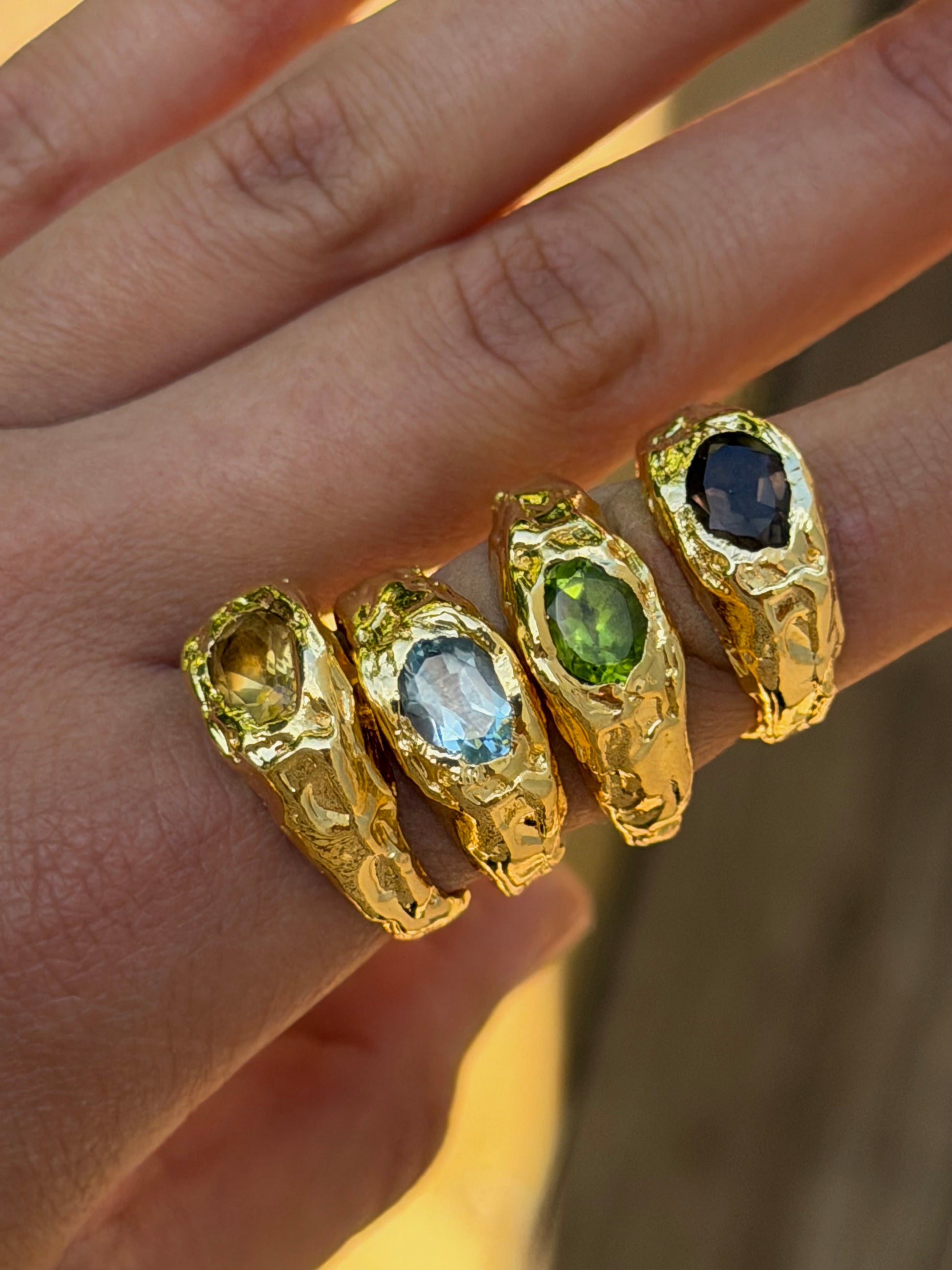 טבעת מצופה זהב 14 קרט משובצת במרכז עם אבן חן טבעית