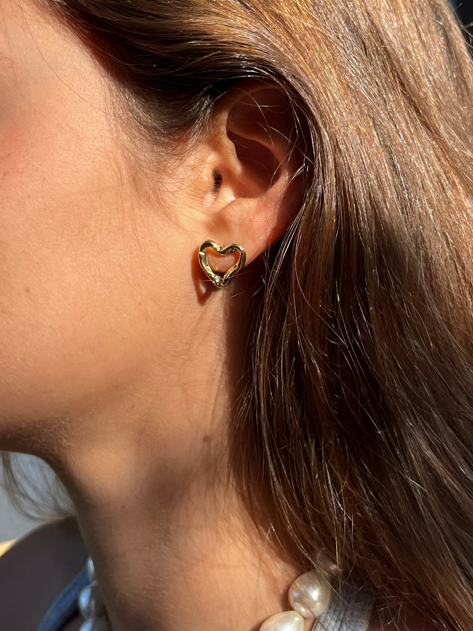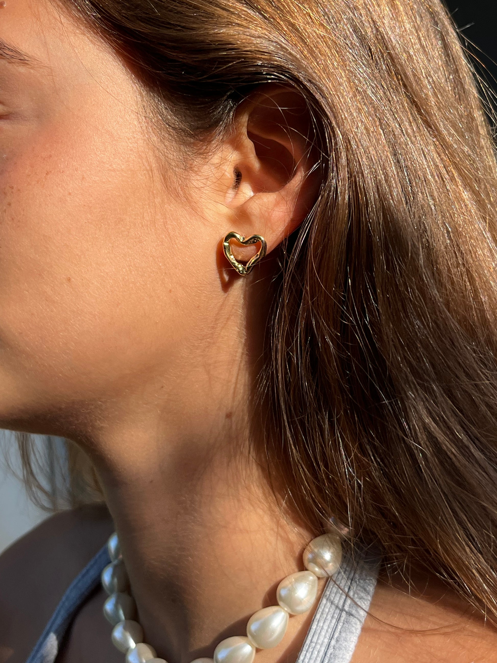 עגילי לב מצופים 2 מקרון זהב 14 קרט