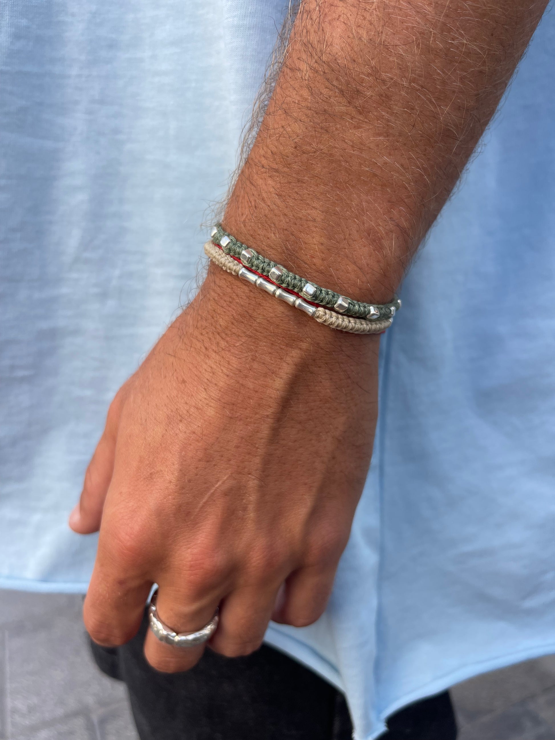צמיד בעבודת יד עם חרוזי כסף 925 וחוט שעווה