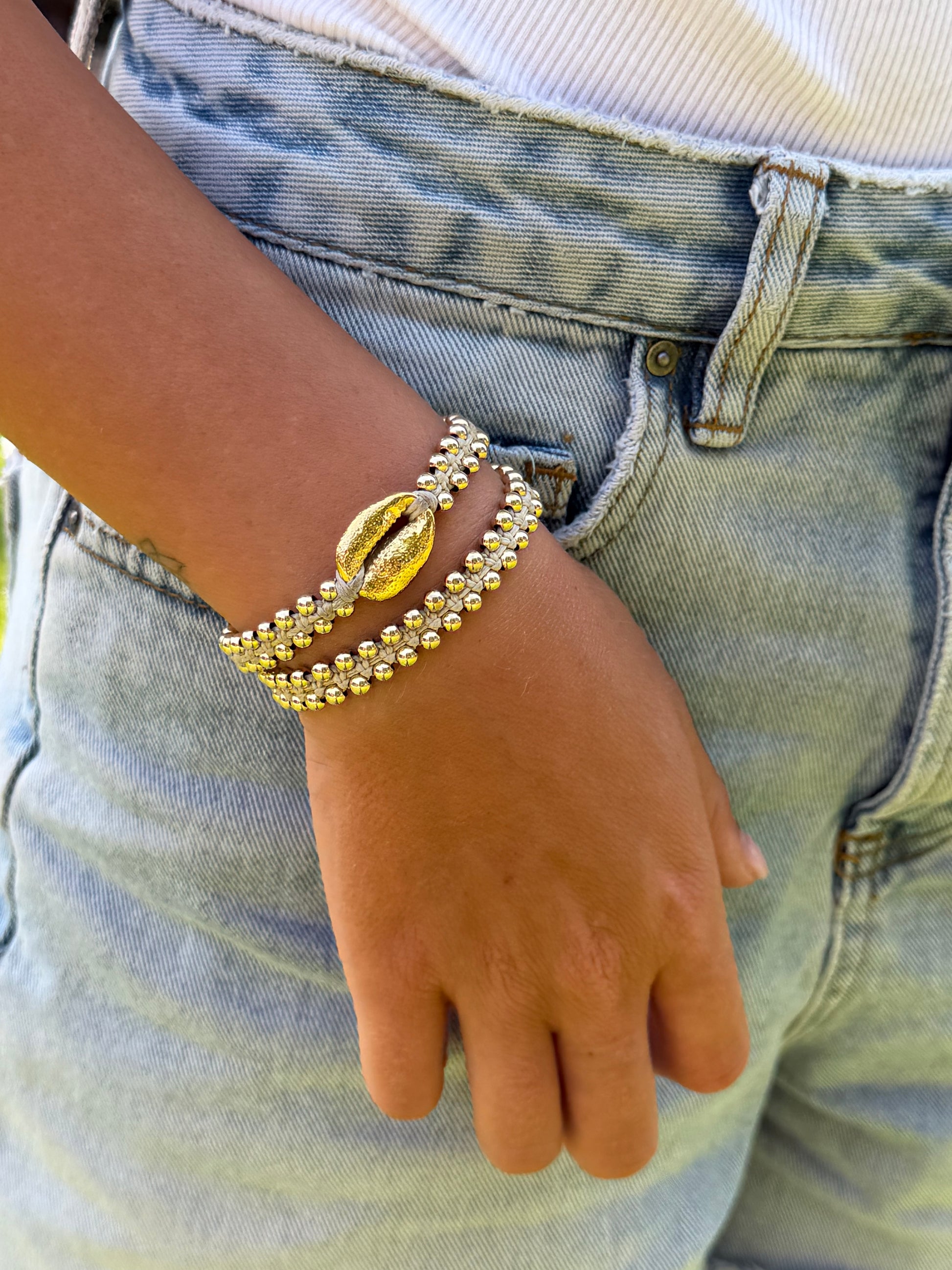 חרוזי גולדפילד ותיליון צדף מצופה זהב 14 קרט
