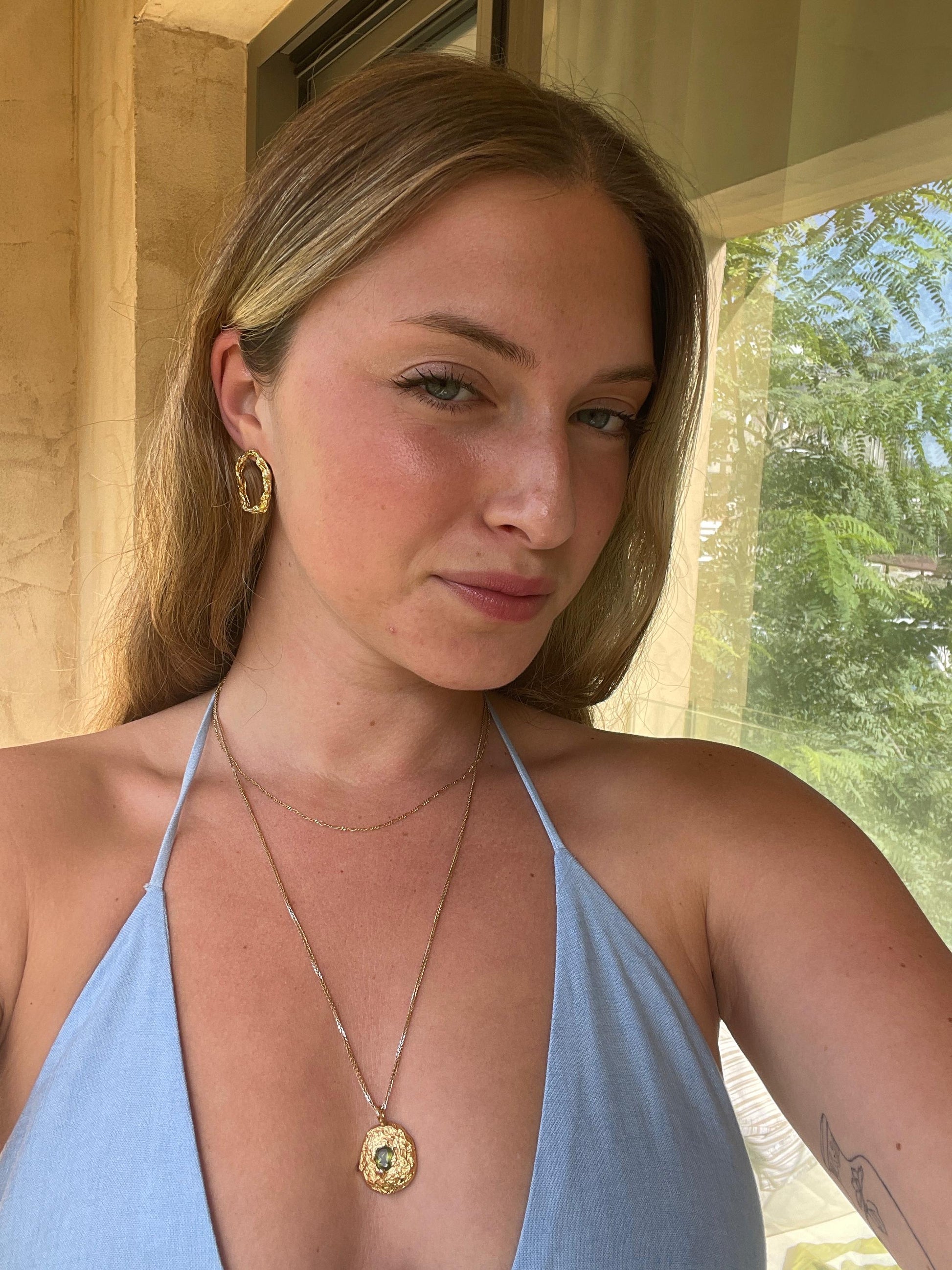 שרשרת הילה מצופה 2 מקרון זהב 14 קרט משובצת עם אבן חן מהבורסה ברמת גן