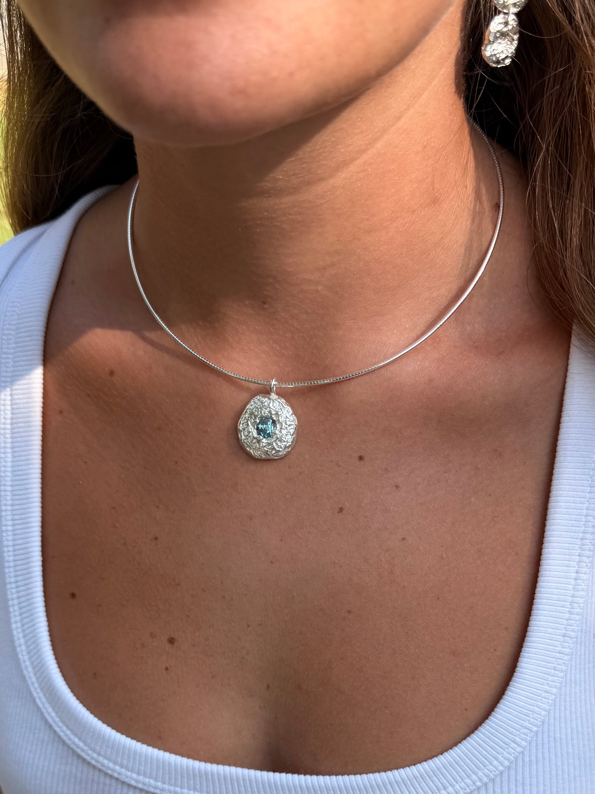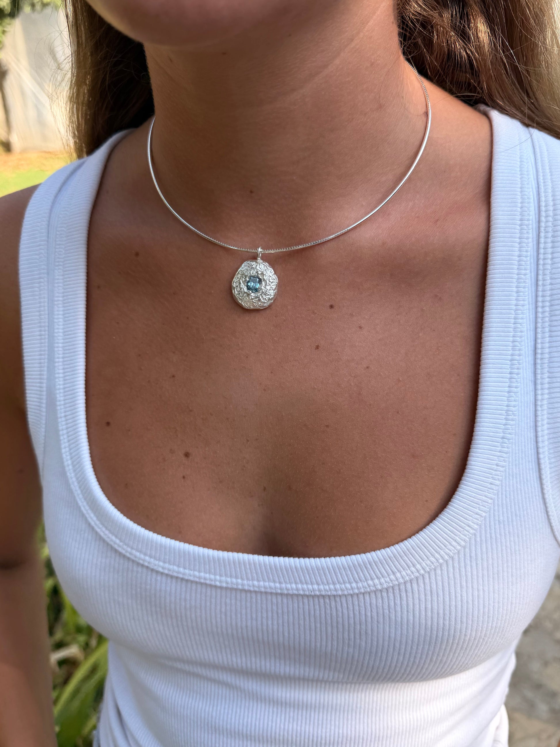 שרשרת מצופה 2 מקרון זהב 14 קראט עם אבן בלו טופז