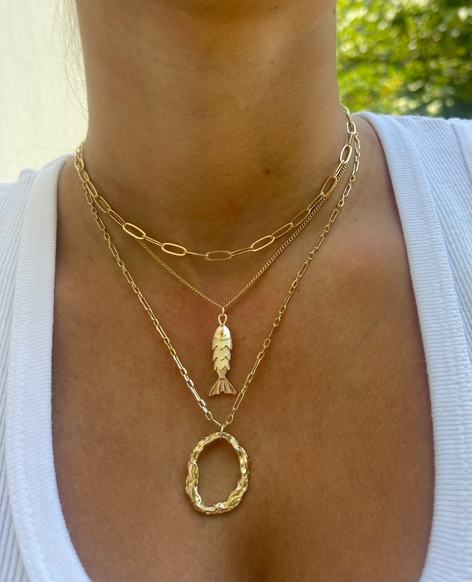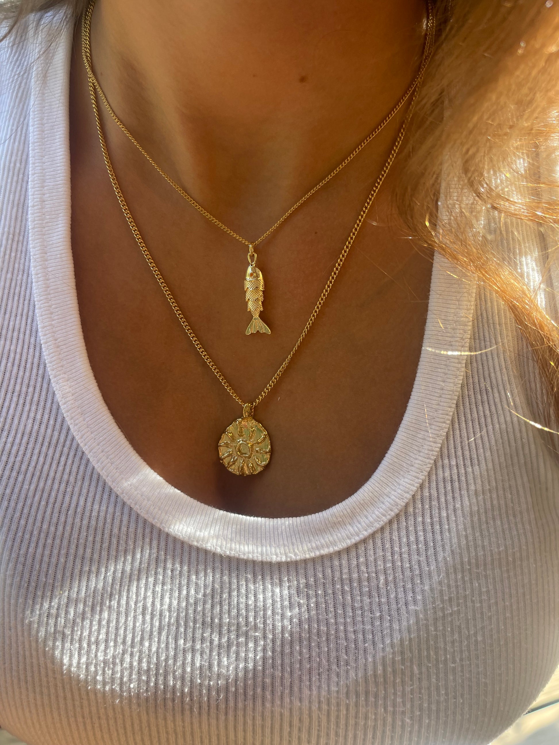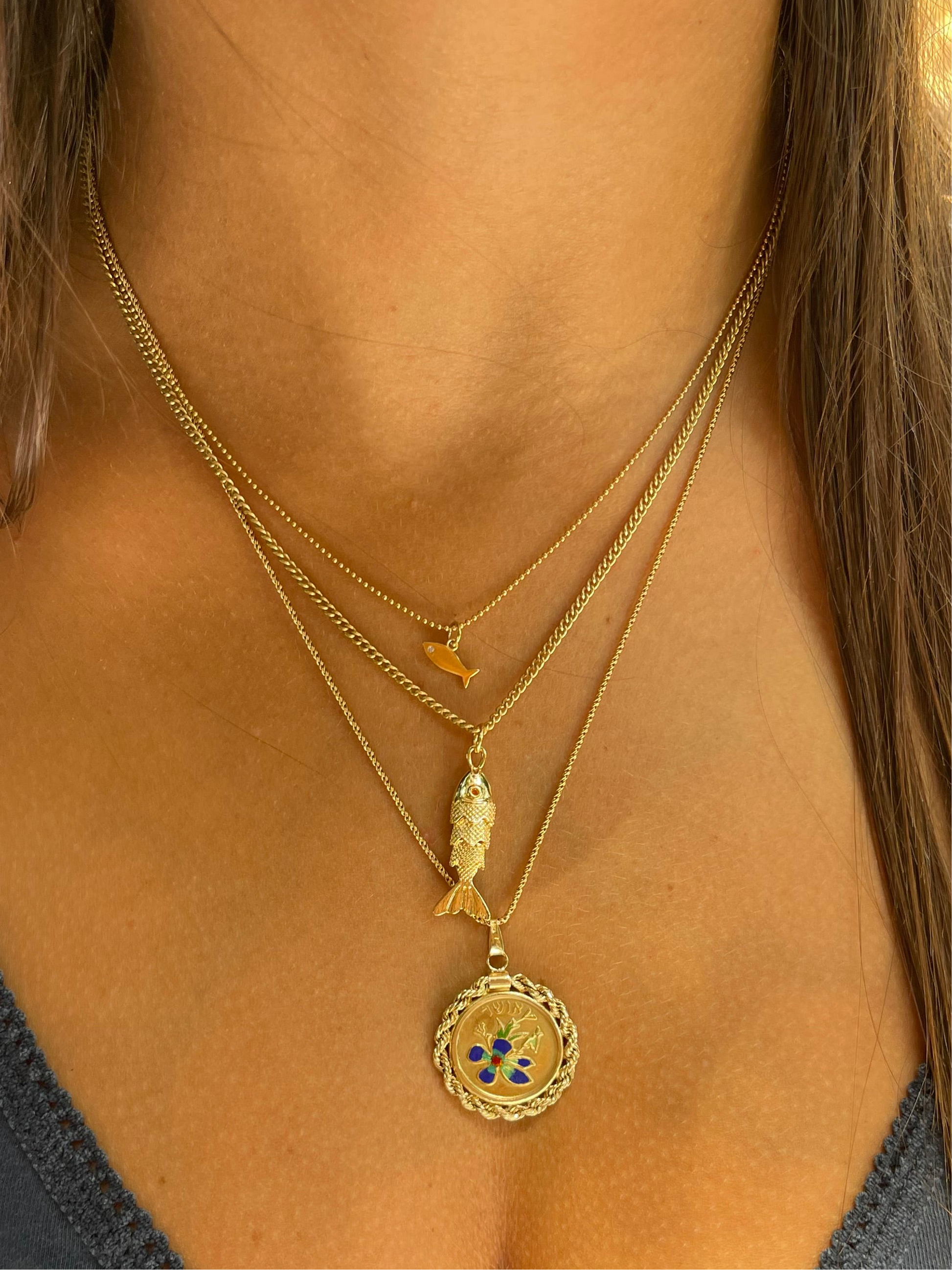 שרשרת נמו מצופה 2 מקרון זהב 14 קרט ומשובצת עם זרקון כתום