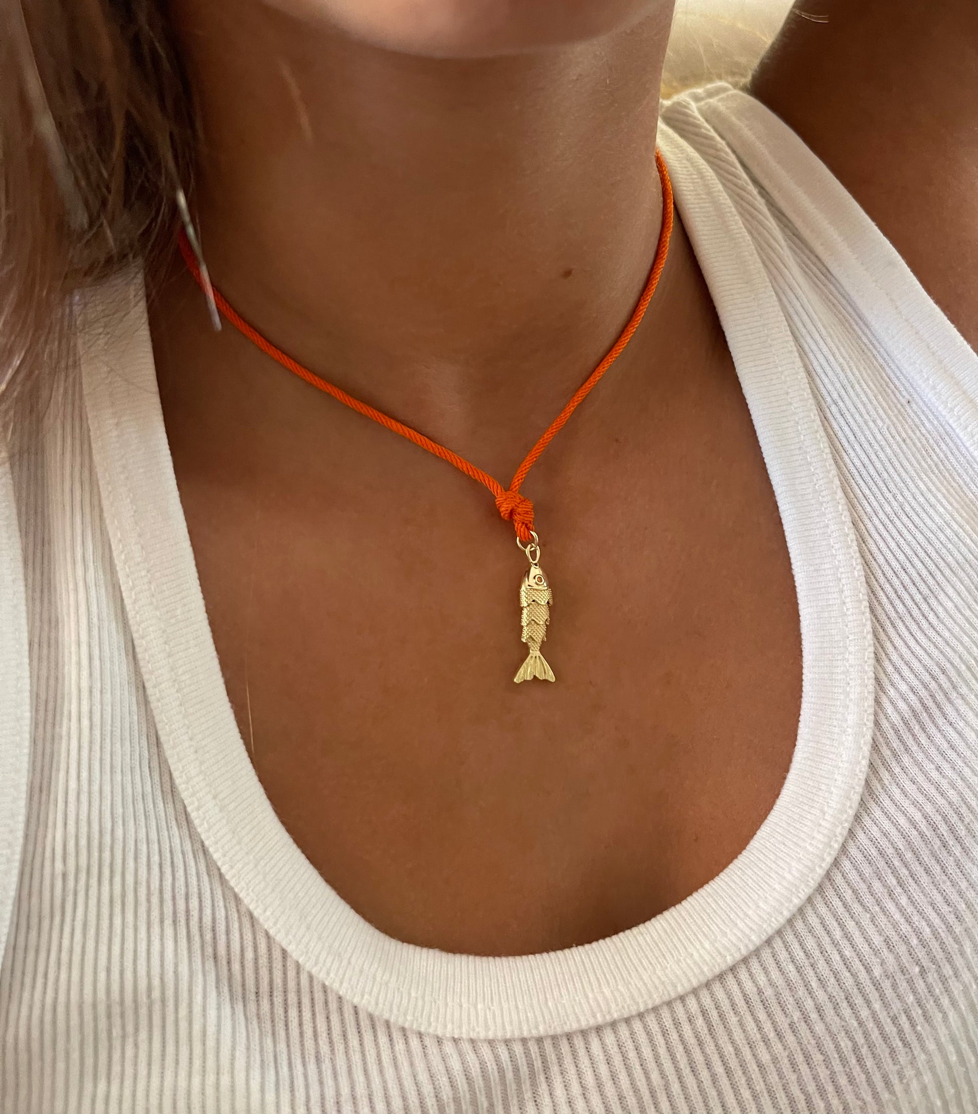 שרשרת דג מצופה 2 מקרון זהב 14 קרט משובצת בזרקון כתום