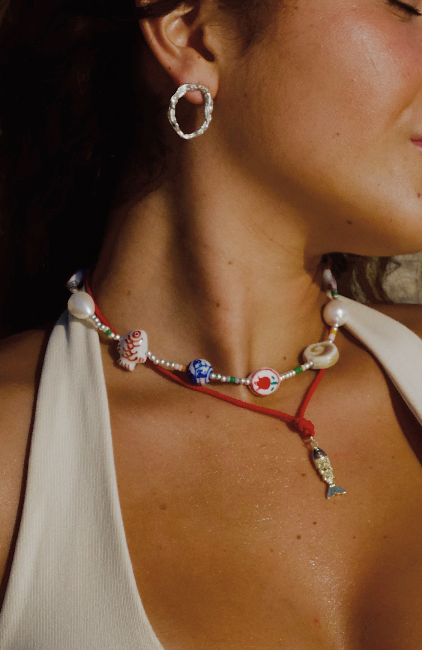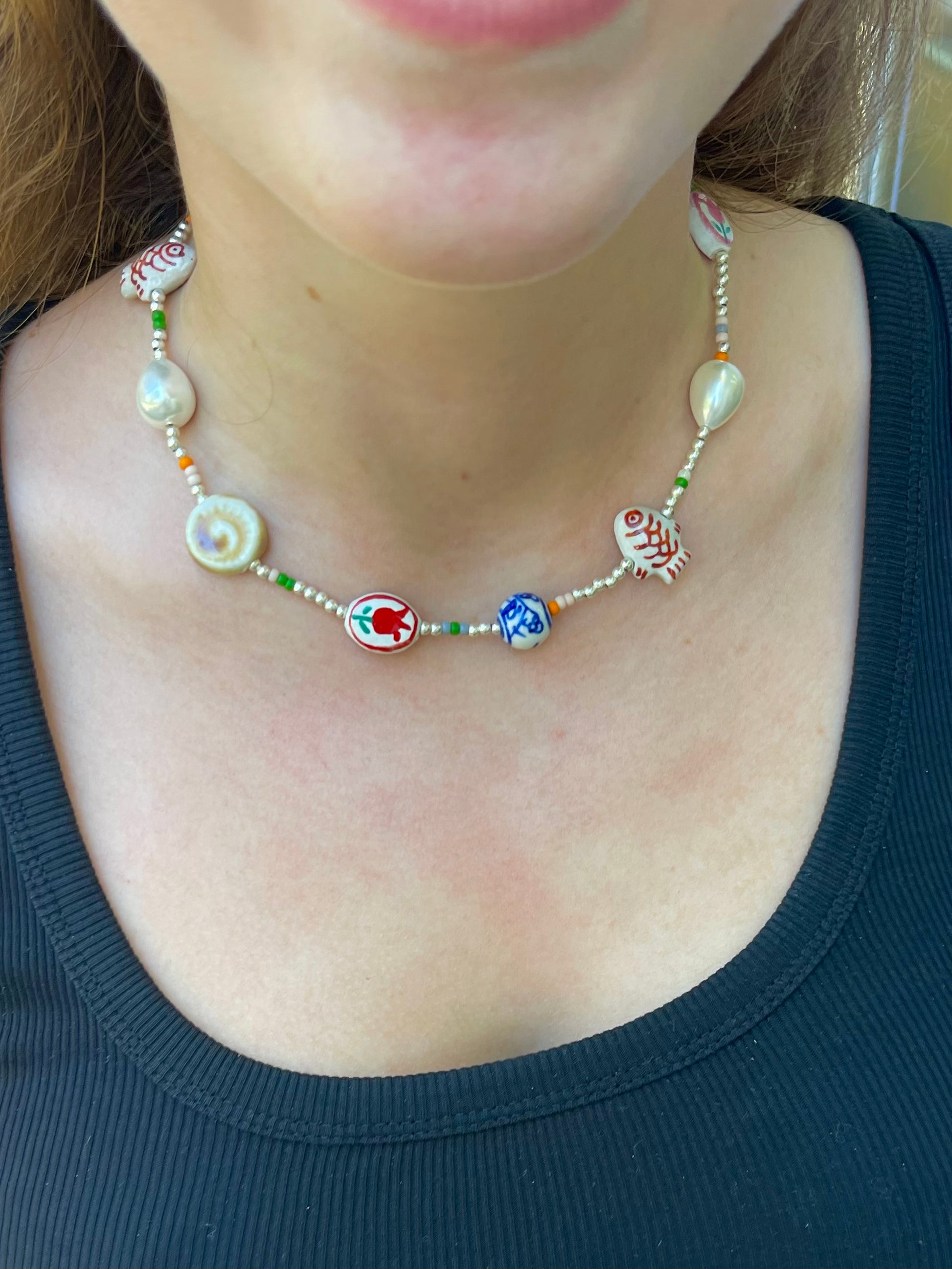 שרשרת בשילוב חרוזי כסף סטרלינג 925 עם חרוזי קרמיקה צבעוניים