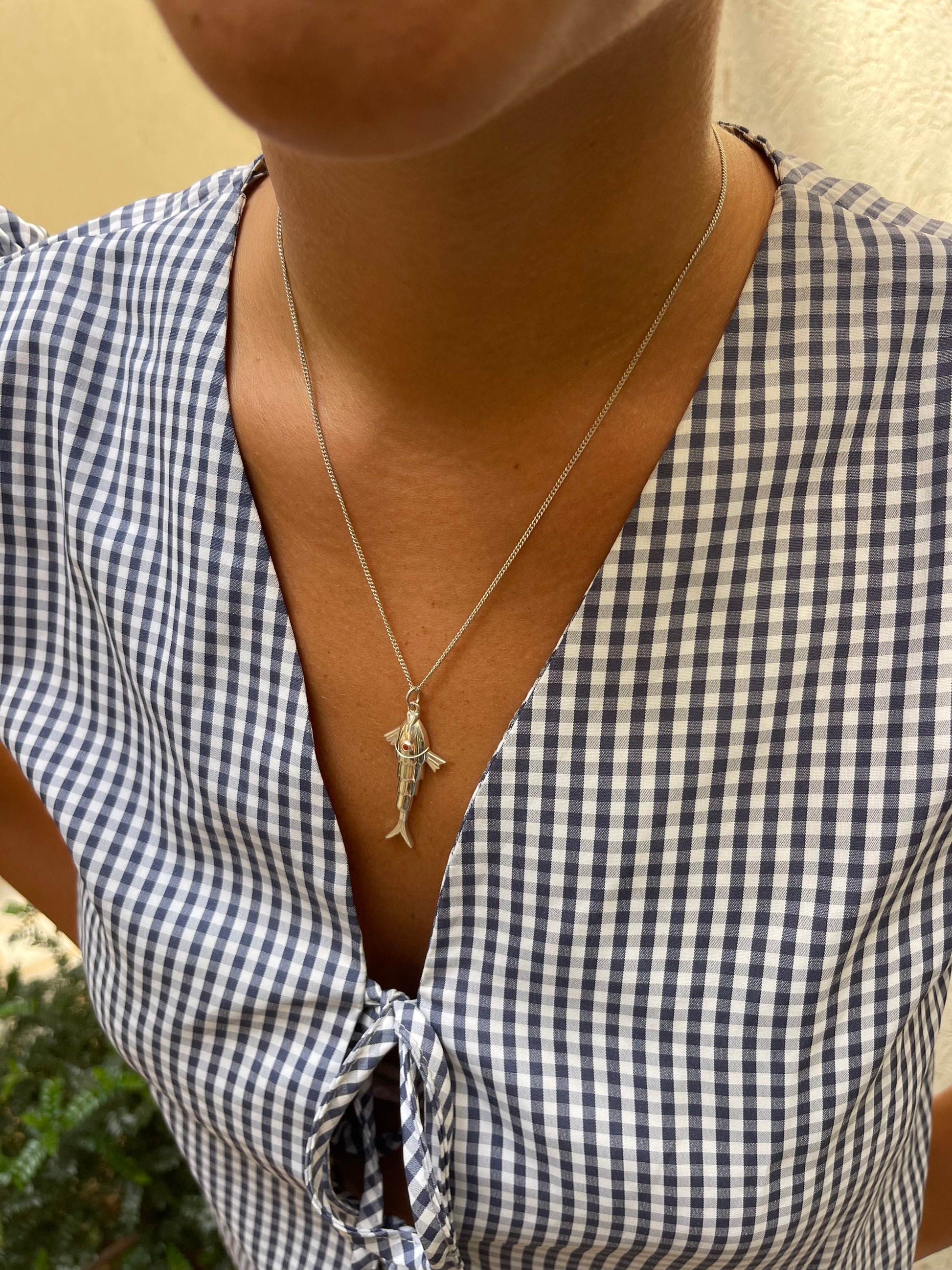 שרשרת דג קוי כסף סטרלינג 925 משובצת עם זרקון כתום