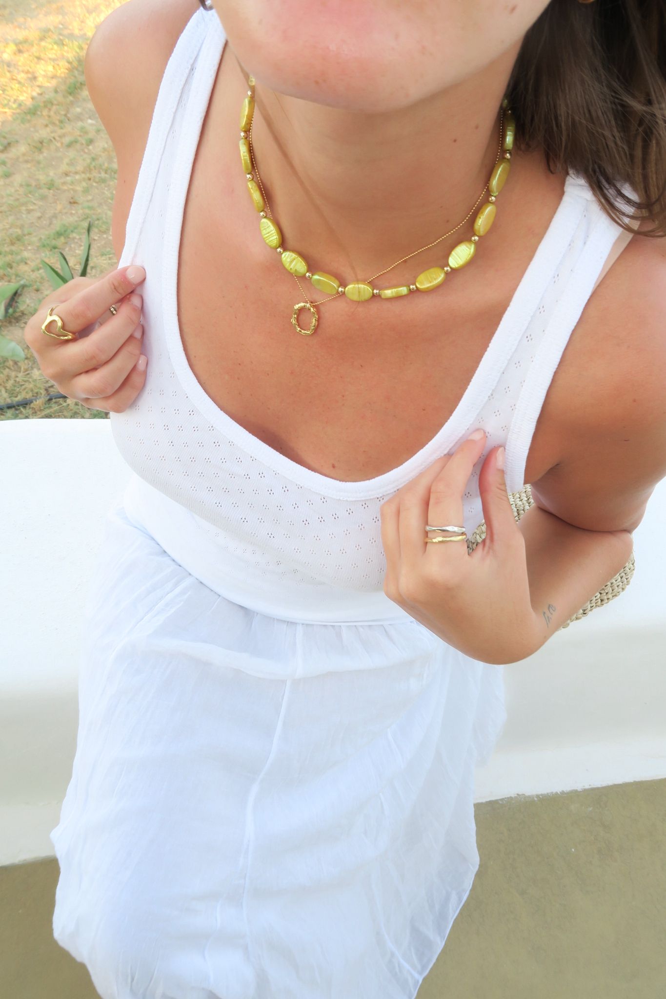 שרשרת פנינים ירקרקות בשילוב חרוזי גולדפילד